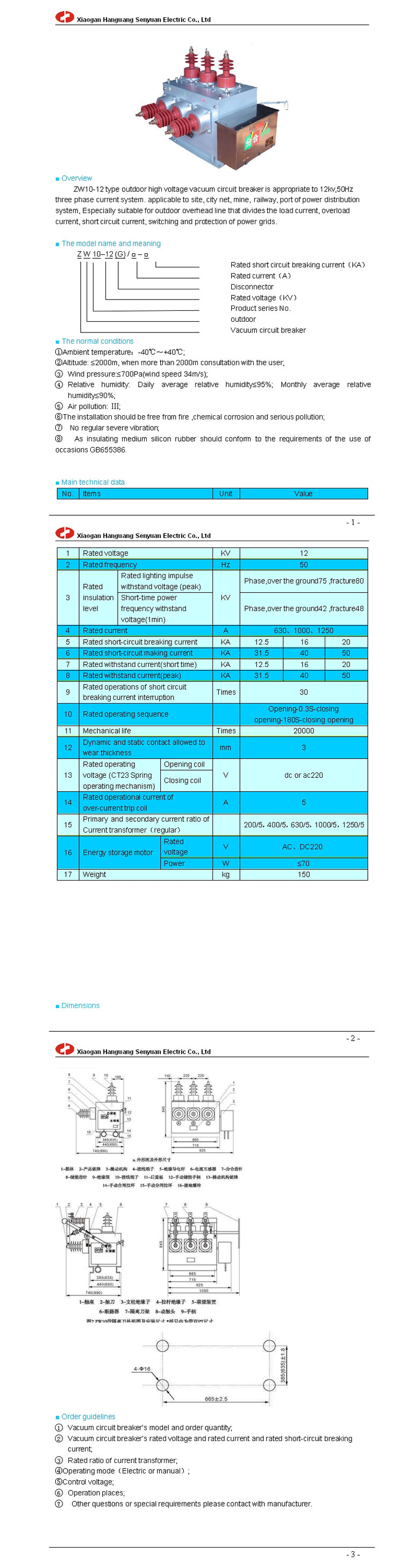 ZW10-12 outdoor high voltage vacuum circuit breaker