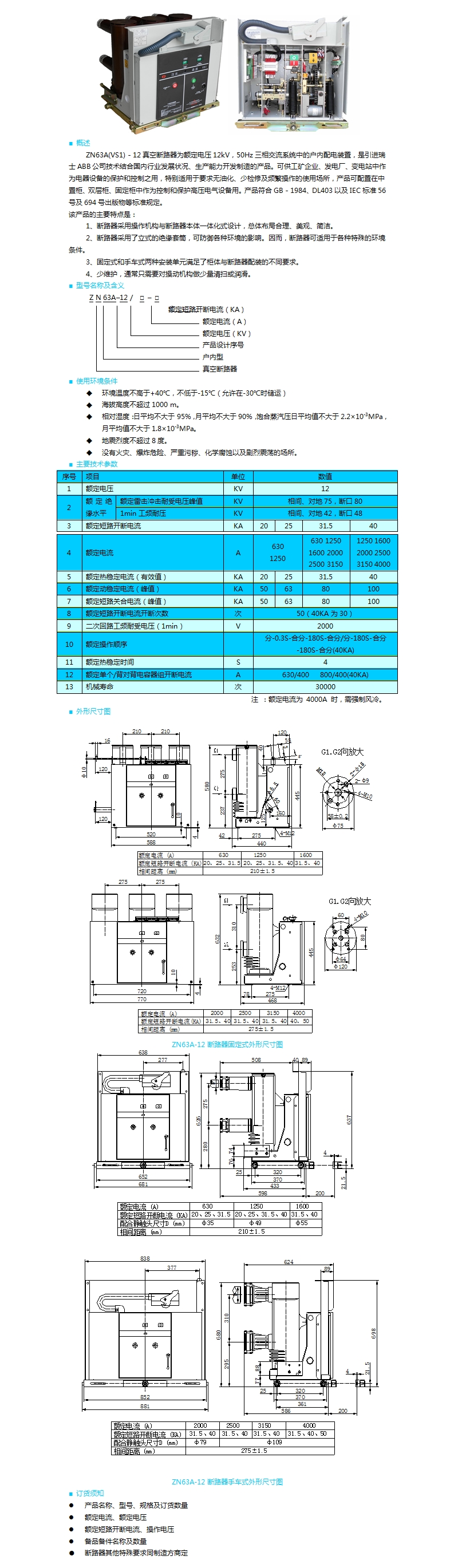 ZN63A(VS1)-12型戶內(nèi)高壓真空斷路器